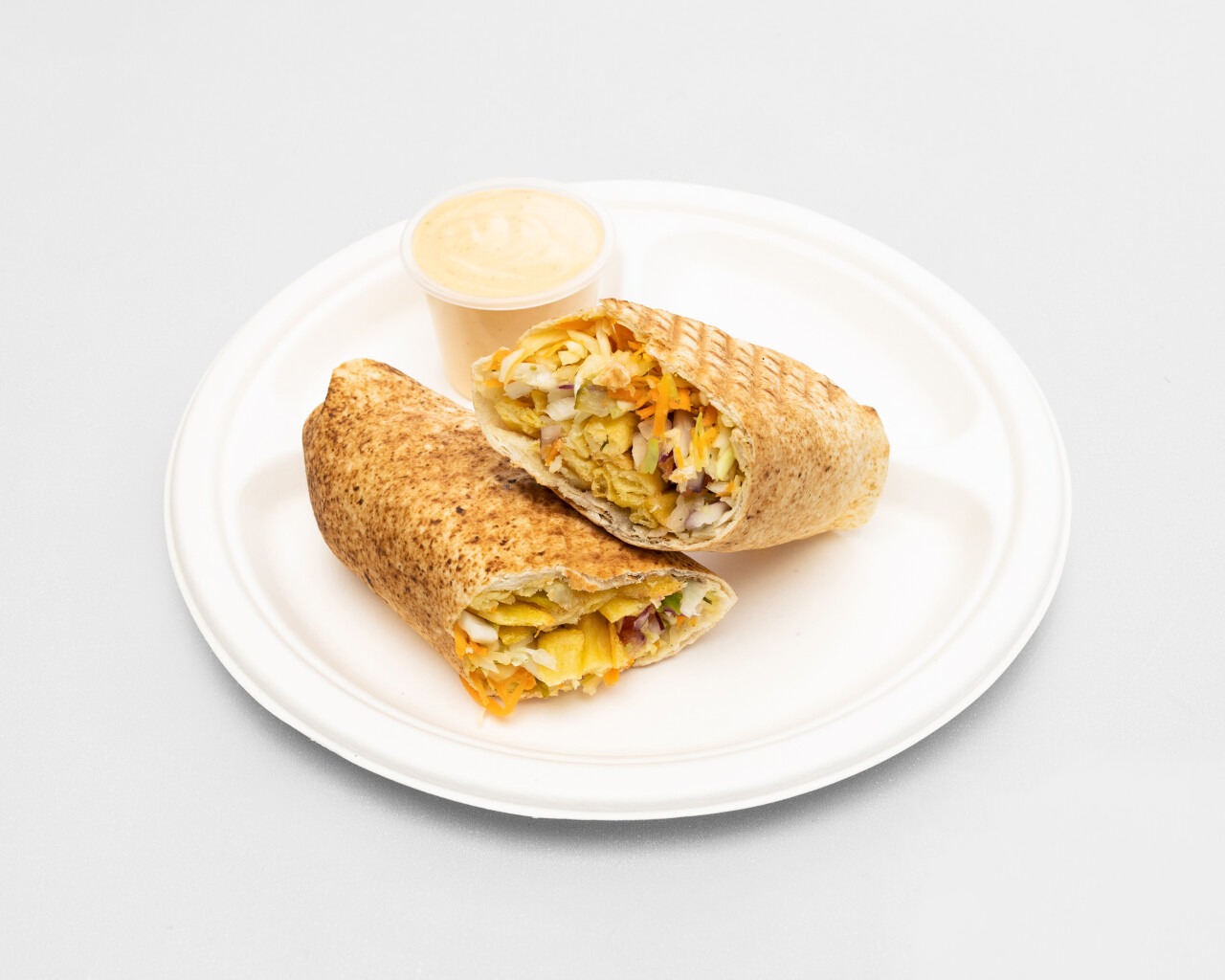 Tortilla, mięso, warzywa, sos -